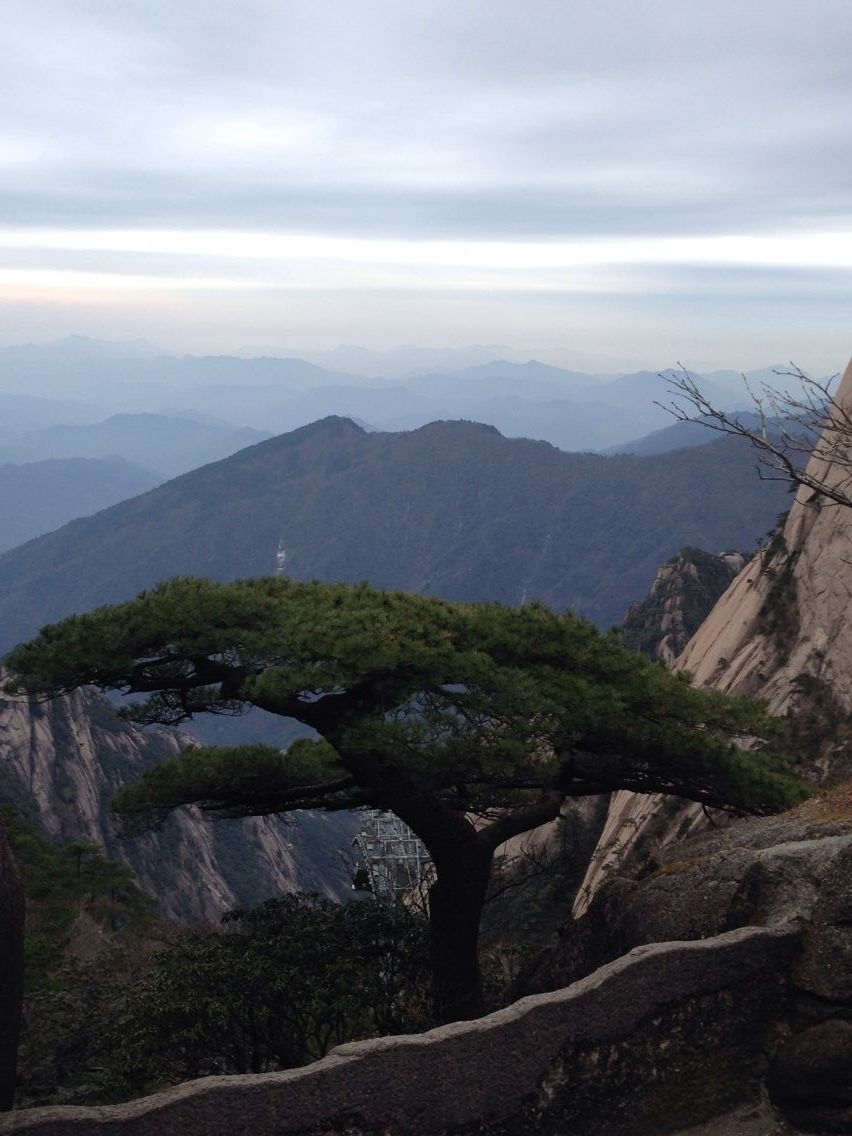 從市區(qū)做景區(qū)公交40分鐘才到達我們神往的黃山風景區(qū)??紤]到大家平時的運動量都比較少,公司為每位員工特意買了纜車,我們乘纜車而上。從空中俯瞰山下,滿眼都是奇松怪石。讓我們不得不嘆服大自然的鬼斧神工。